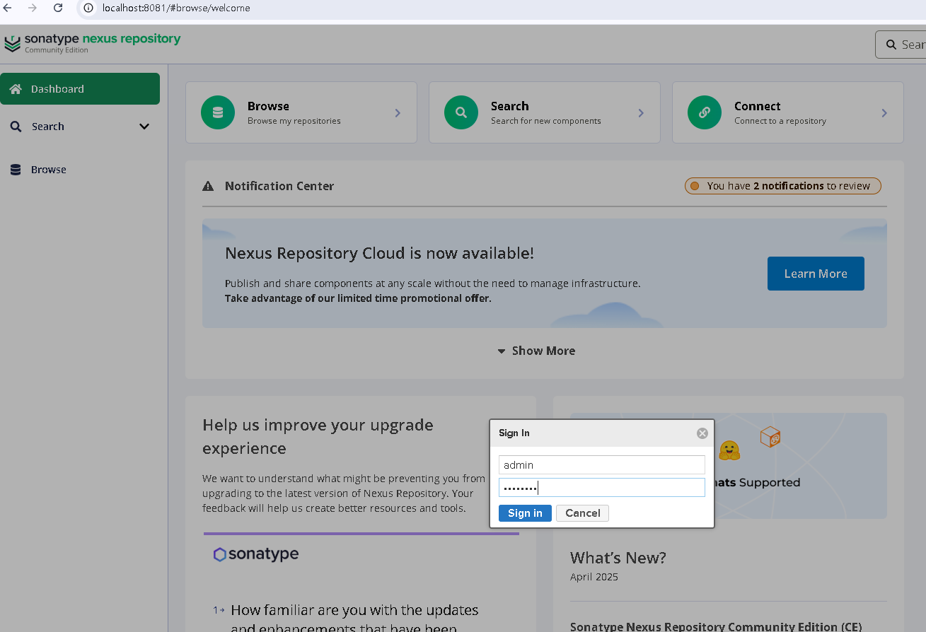 # step03. 넥서스 포털 admin 계정 로그인 및 비번 변경