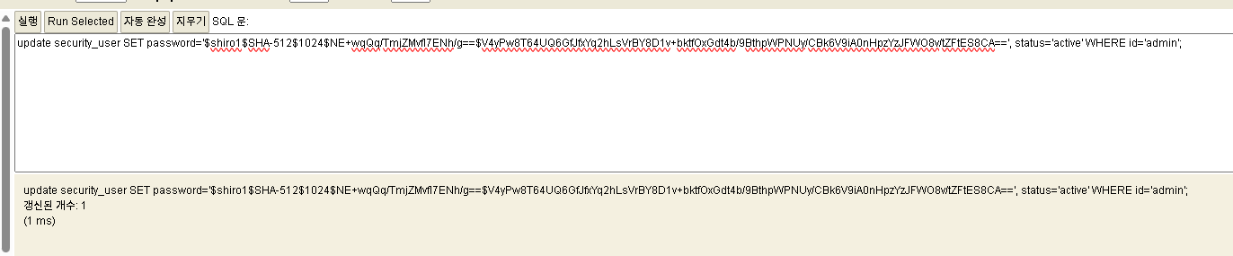 ※ admin 계정이 없는 경우, security_user 테이블에 데이터 입력