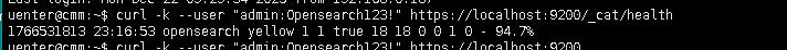 1766555122 05:45:22 opensearch yellow 1 1 true 34 34 0 0 1 0 - 97.1%