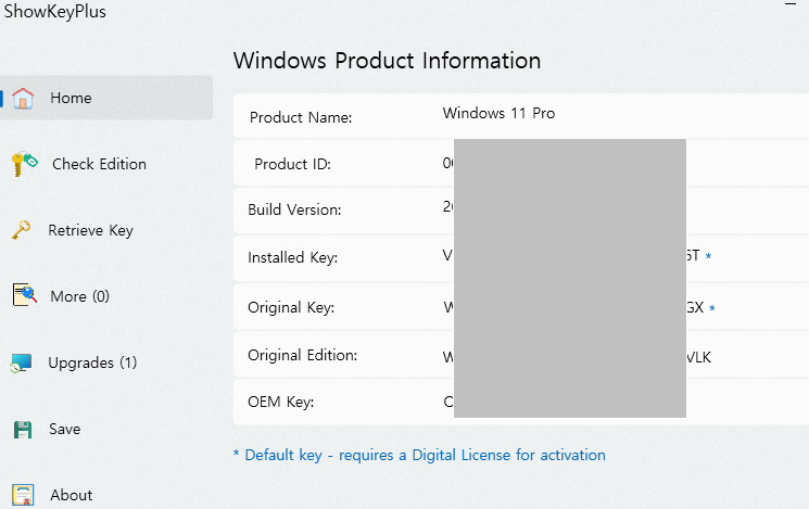 Microsoft Store에서 "ShowKeyPlus" 설치 하여 확인