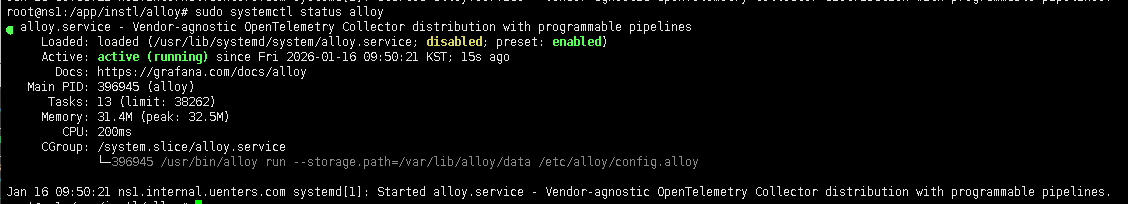 # Grafana Alloy로 *.internal.uenters.com 호스트에서 생성한 로그 전달 예시