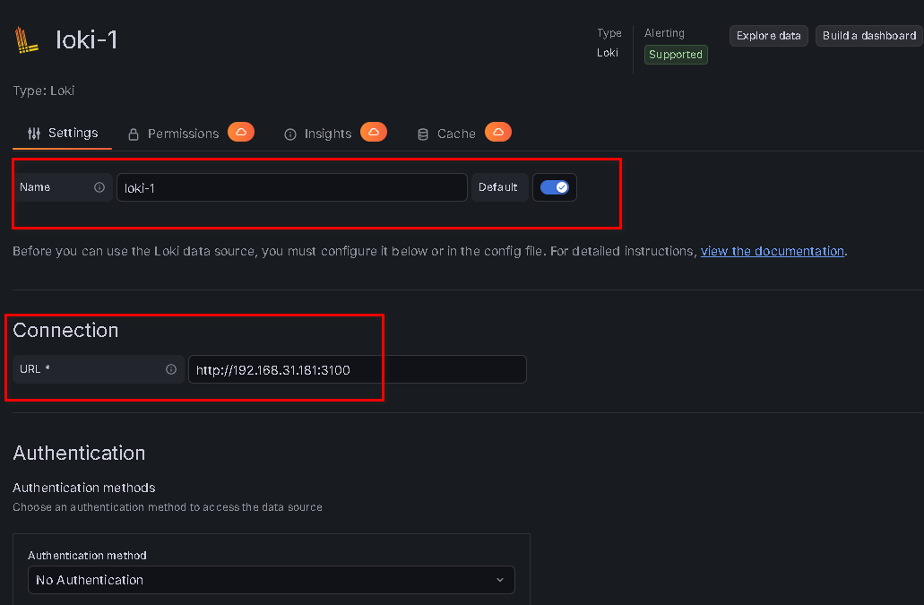 ① 메뉴 [Connections] → [Add new connection] → [Loki] 선택